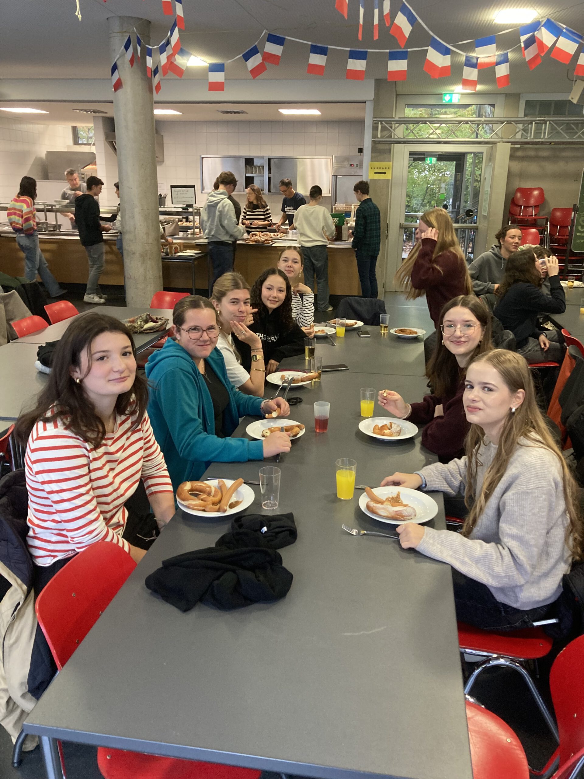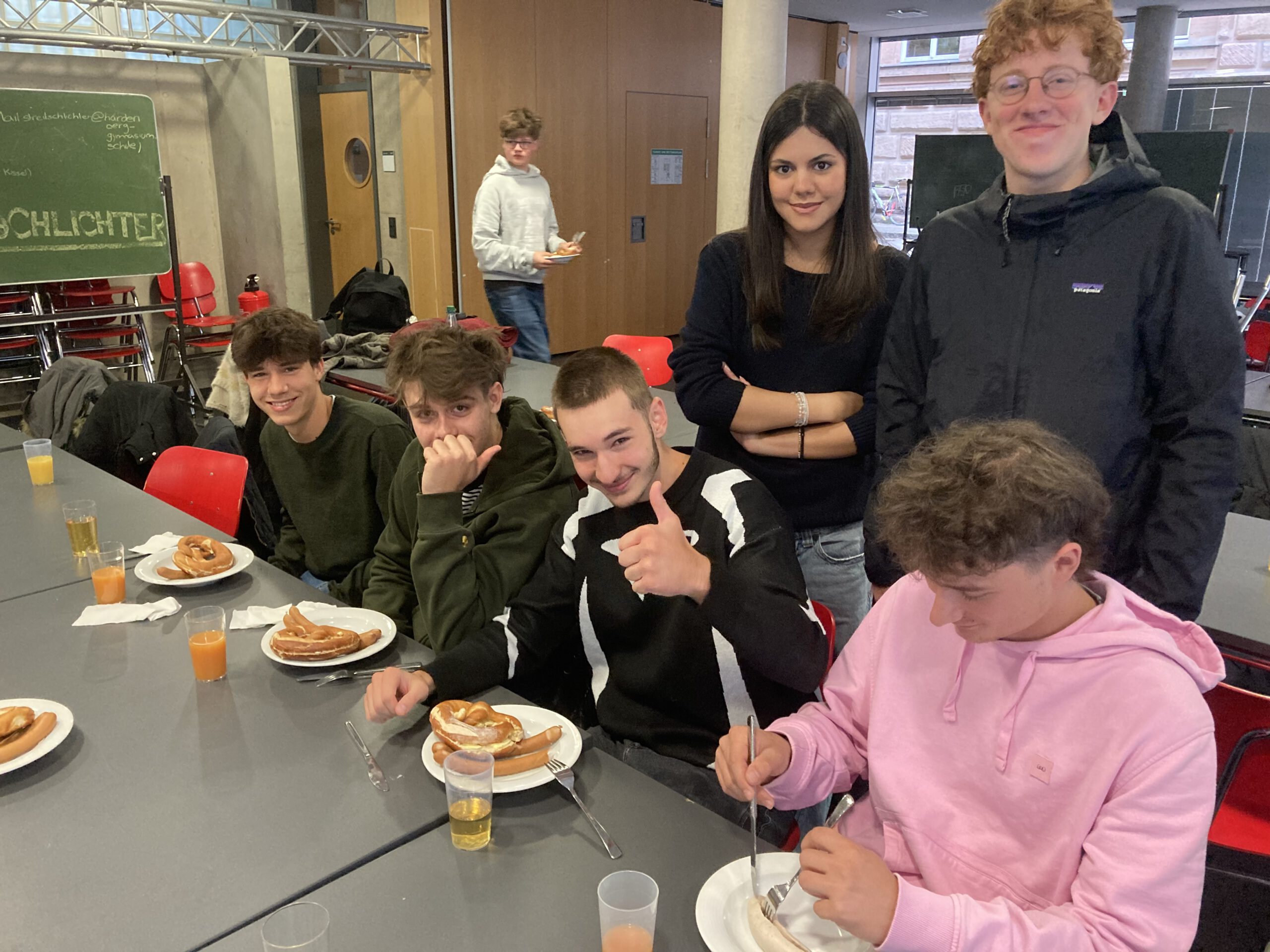 Nach einer langen, 16-stündigen Busfahrt kamen am Freitagabend endlich unsere 21 Austauschschülerinnen und -schüler samt ihrer beiden Lehrkräfte vom Lycée Agricole Les-Vaseix bei uns in Fürth an – müde, aber bestens gelaunt! Das Wochenende stand ganz im Zeichen des Kennenlernens in den Familien. Am Montag folgte die offizielle Begrüßung durch unseren Schulleiter – inklusive einem zünftigen Weißwurstfrühstück, liebevoll organisiert vom Elternbeirat. Danach ging’s ins Fürther Rathaus und weiter auf Entdeckungstour durch die Innenstadt – natürlich durfte auch ein Abstecher auf die Kärwa nicht fehlen!