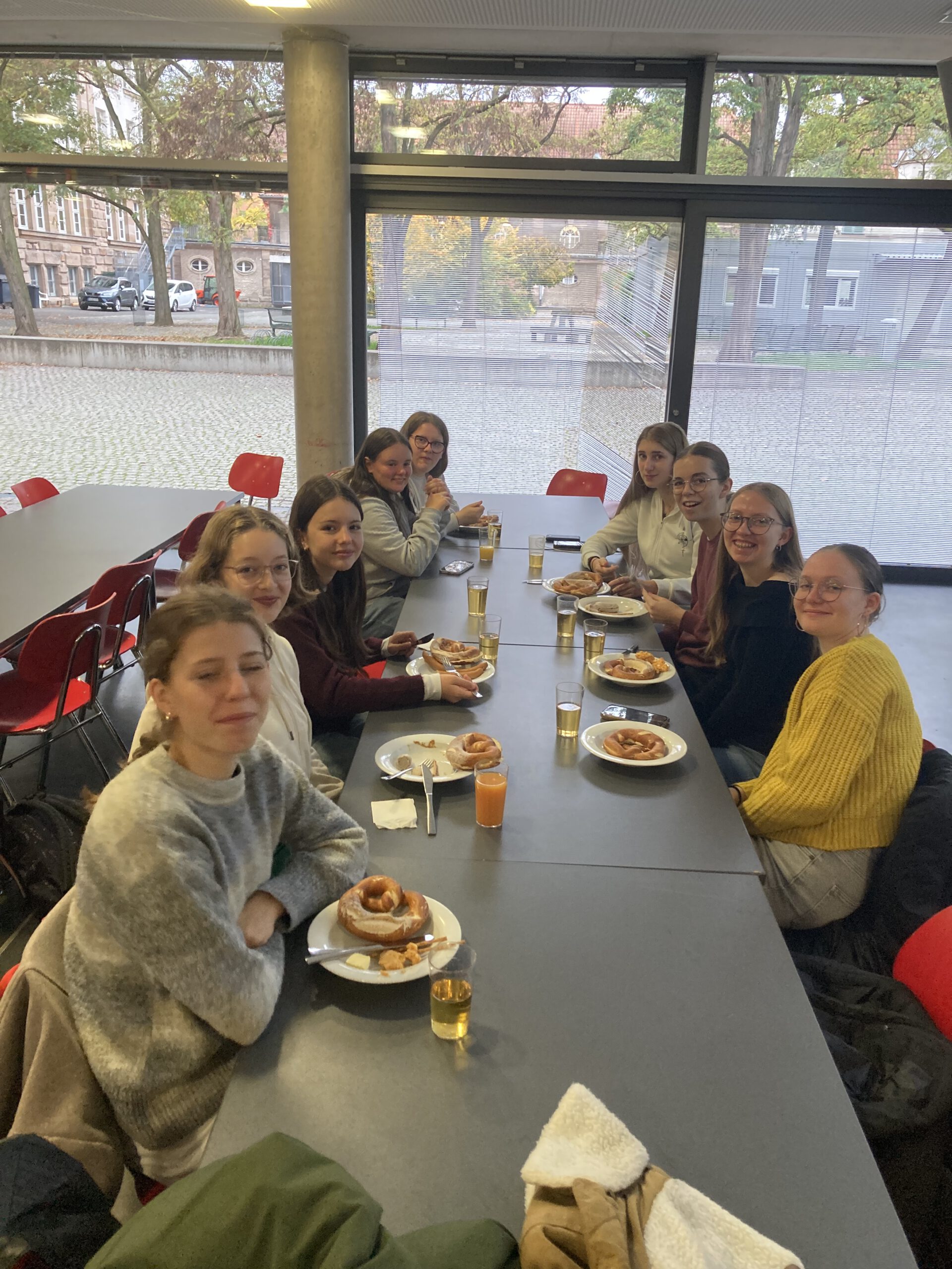 Das weitere Programm hält noch Workshops im Jüdischen Museum und im Neuen Museum, gemeinsames Lebkuchenbacken, Bouldern in der Kletterhalle und sogar ein Ausflug zum Fürther Solarberg bereit. Am Freitagabend heißt es dann leider schon Au Revoir 😢beim Abschiedsabend mit Fotoshow, Karaoke werden werden sicher noch weitere schöne Erinnerungen an diesen Austausch entstehen!