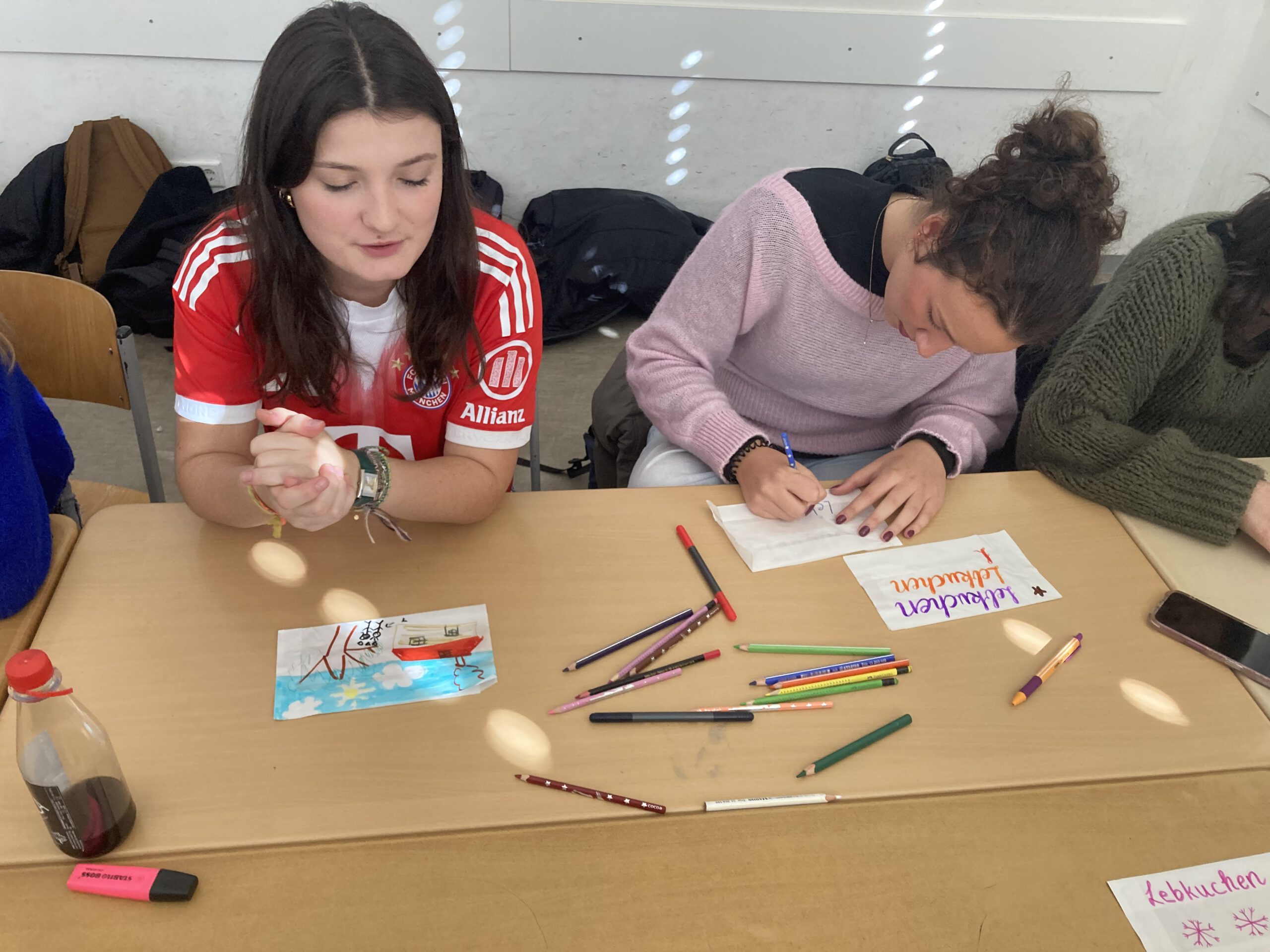 Das weitere Programm hält noch Workshops im Jüdischen Museum und im Neuen Museum, gemeinsames Lebkuchenbacken, Bouldern in der Kletterhalle und sogar ein Ausflug zum Fürther Solarberg bereit. Am Freitagabend heißt es dann leider schon Au Revoir 😢beim Abschiedsabend mit Fotoshow, Karaoke werden werden sicher noch weitere schöne Erinnerungen an diesen Austausch entstehen!