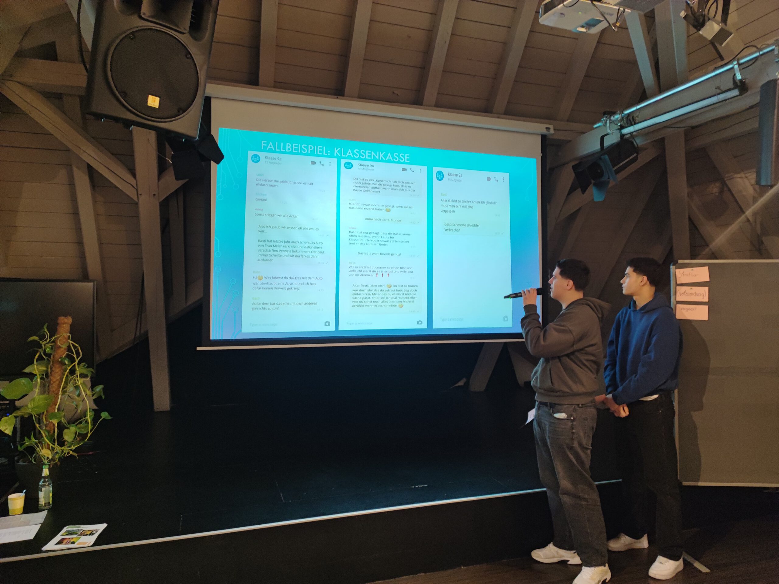 In diesem Jahr lag der Schwerpunkt auf dem hochaktuellen Thema „Radikalisierung im Netz“. Eine Mitarbeiterin der Bayerischen Informationsstelle gegen Extremismus (BIGE) führte die Scouts zunächst im Rahmen eines Vortrags in die Thematik ein. Sie erläuterte, warum Jugendliche für extremistische Inhalte im Netz besonders empfänglich sind, und zeigte auf, wie sich die Strategien von Extremisten in sozialen Medien erfolgreich entlarven lassen. Anschließend wurden die Scouts selbst aktiv: In spannenden Workshops zu Themen wie „KI & Datenschutz“, „Digitale Resilienz“ oder „Selbstinszenierung und Schönheitsideale auf Social Media“ erarbeiteten sie Materialien, die sie später in ihren Vorträgen einsetzen können. Nach einer willkommenen Mittagspause mit heiß umkämpftem Pizzabuffet wurden die Ergebnisse präsentiert und bewertet. Ein herzlicher Dank gilt dem Team des „Connect“ für diesen ereignis- und erkenntnisreichen Tag, der – wie immer – perfekt organisiert war.