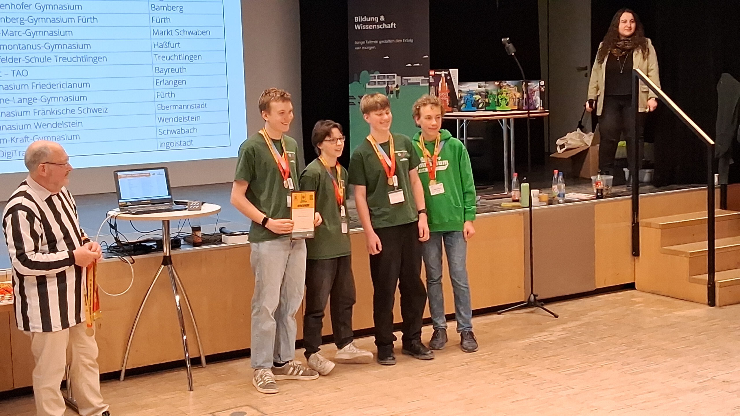 Im weiteren Lauf des Tages kann das Team die Fachjury vor Ort mit guten Leistungen in den Wertungskategorien „Forschungspräsentation“, „Robot-Design“ und „Team-Spirit“ überzeugen. Im Herzstück des Wettbewerbs, dem „Robot-Game“ wird das Halbfinale trotz der anfänglichen technischen Schwierigkeiten nur ganz knapp verpasst. In der Gesamtwertung erreichen die TERMINATORS unter fünfzehn teilnehmenden Teams einen großartigen dritten Platz, mit dem sie sich gleichzeitig für die nächste Wettbewerbsstufe in Heidelberg qualifizieren.