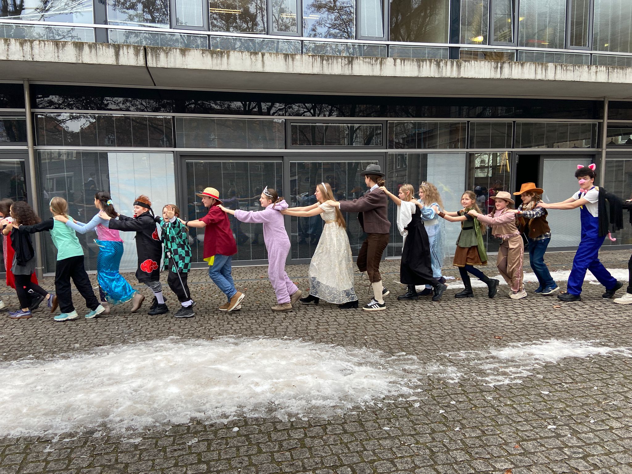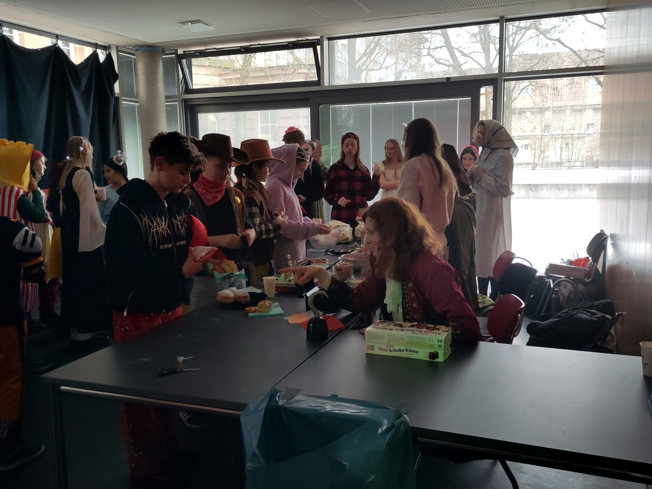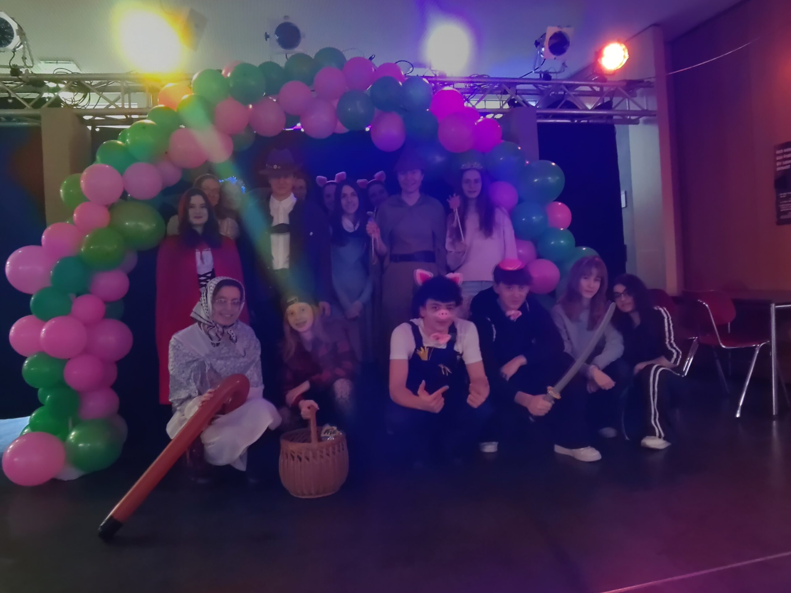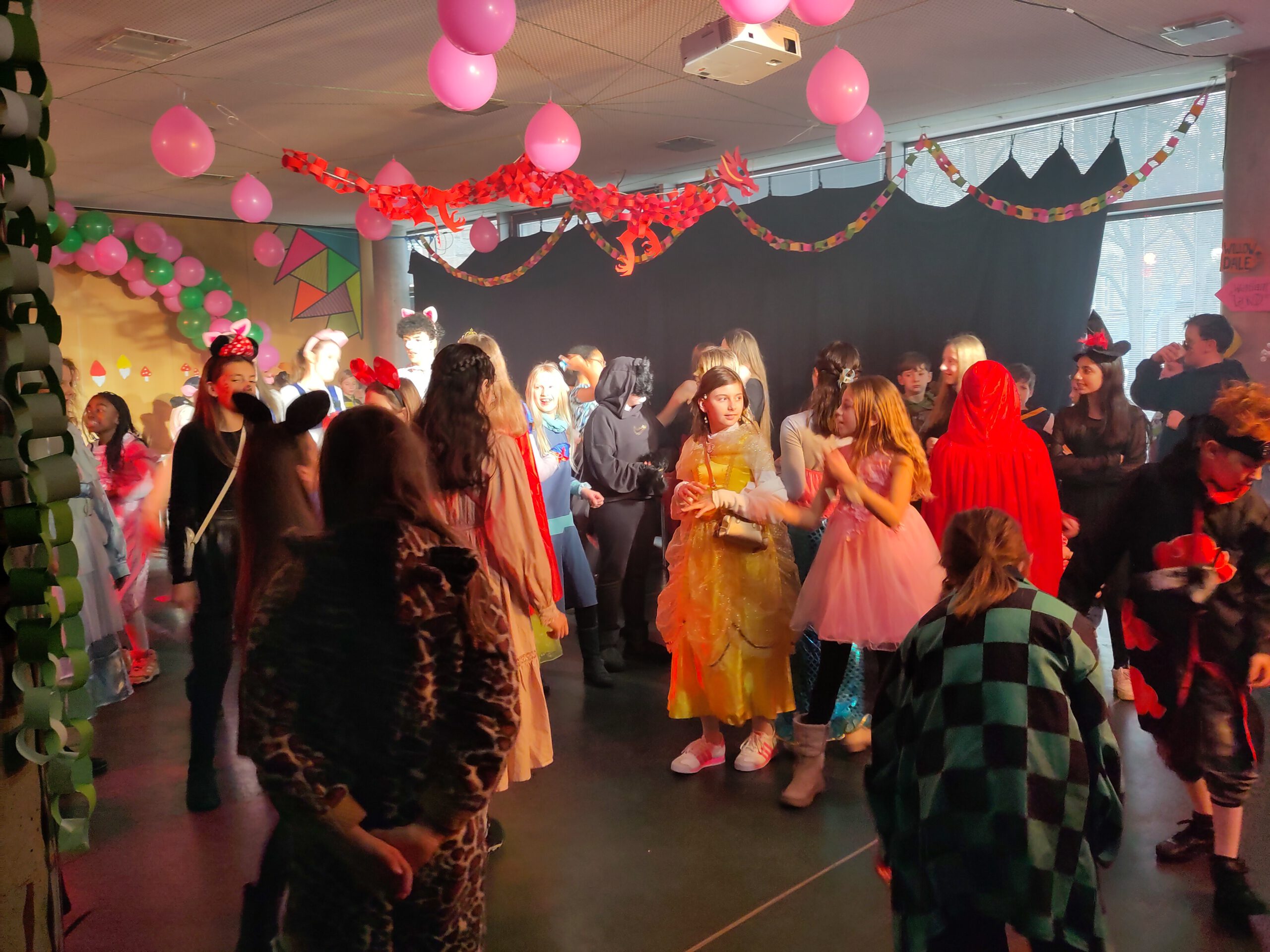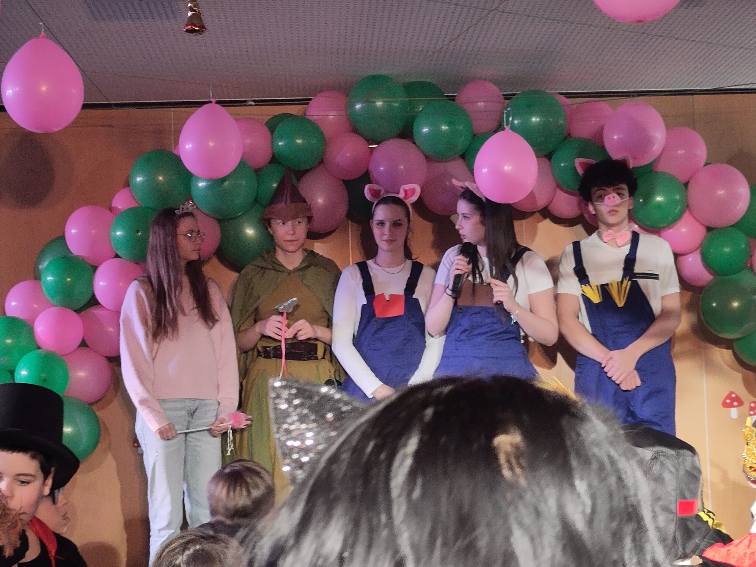 Die Faschingsparty fand dieses Mal unter dem Motto “Es war einmal …” statt. Zahlreiche Rotkäppchen, Prinzessinnen und Prinzen, eine Froschkönigin und etliche andere Märchengestalten pilgerten in die Mensa, um eine gute Zeit zu haben. Es wurde getanzt, gelacht und gespielt. Zu den Highlights zählten das Schokokuss-Essen, Limbo Dance und eine Polonaise, die durch den ganzen Schulhof führte. Den Kostümwettbewerb gewannen die “3 kleinen Schweinchen”, dicht gefolgt von der Froschkönigin. Während der Feier konnten sich die Partygäste reichlich am Büffet stärken, das der AK “Soziales Engagement” zubereitet hatte. Die Mitglieder des AK freuten sich sehr über die gut besuchte Faschingsparty, die bei dem Matschwetter für gute Laune sorgte und bedanken sich beim Technik-Team für die tolle Unterstützung.