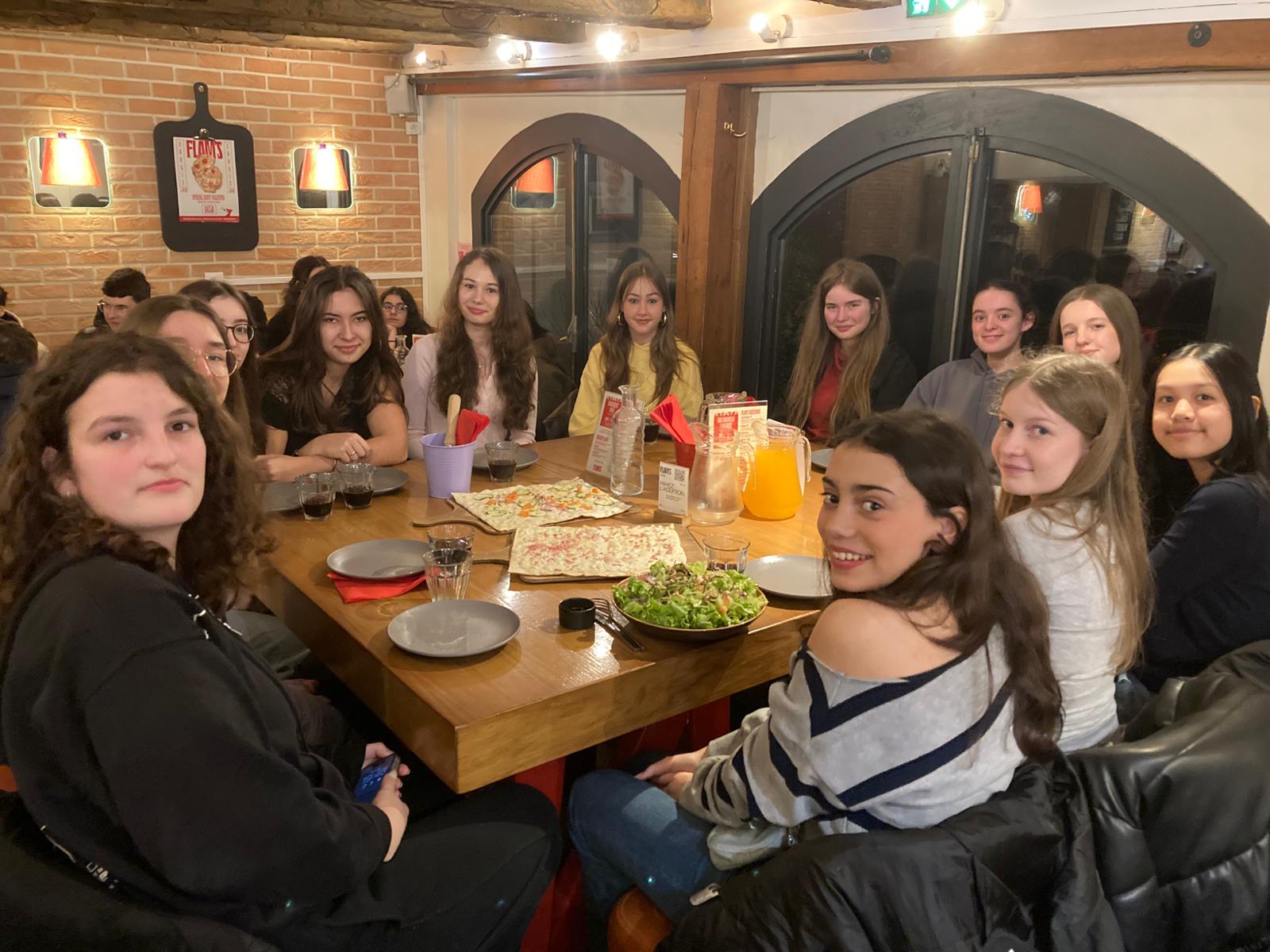 Von Mittwoch bis Freitag erlebten die Französischlernenden der Klasse 9a und die Klasse 9e drei abwechslungsreiche Tage in Straßburg. Gleich am ersten Abend starteten wir mit einer kulinarischen „expérience alsacienne“: Tarte flambée à volonté!